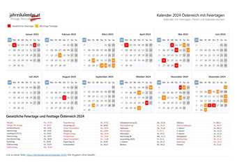 Hinweis: Sämtliche Informationen für den Kalender 2024 wurden sorgfältig zusammengestellt – wir haften jedoch nicht für etwaige Fehler. Ist Ihnen ein Fehler aufgefallen? – dann senden Sie uns doch bitte einen Hinweis an: info@jahreskalender.at . Vielen Dank!